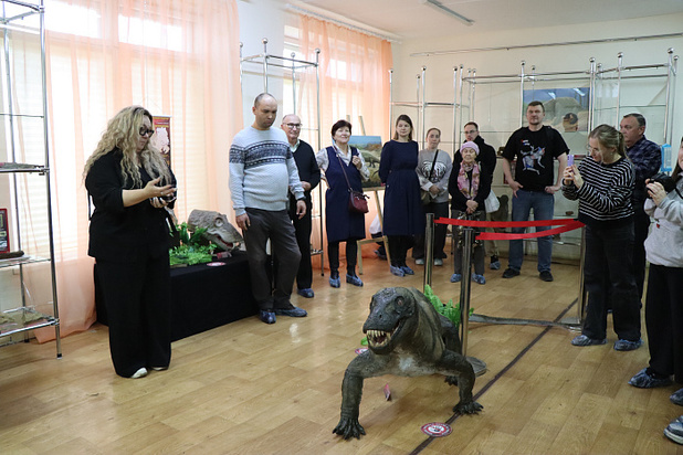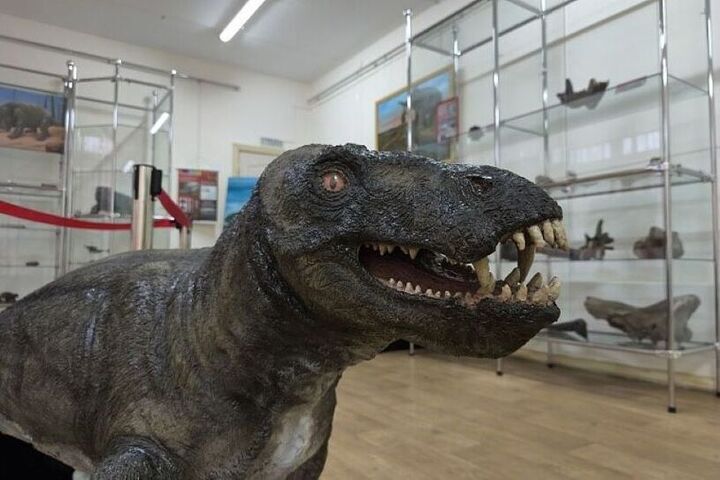 Среди центральных экспонатов, несомненно, выделяется поразительная скульптурная реконструкция титанофонеуса — свирепого хищника пермского периода.